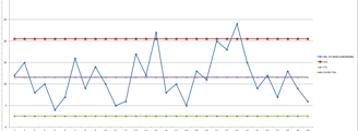 Plot the number of non-confirming with UCL (upper control limit) & (LCL) Lower control limit.